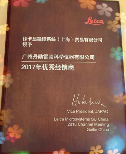 2018年1月26日,作為徠卡公司廣東省醫(yī)療及公共事業(yè)的簽約代理,廣州丹勵雷勃科學儀器有限公司(丹利集團旗下子公司)參加了徠卡2018年度經銷商大會暨答謝宴。2017年度,廣州丹勵雷勃科學儀器有限公司共計完成徠卡訂貨量130.6萬美金(僅寬場顯微鏡部分),YOY同比增長131%,喜獲徠卡2017年度優(yōu)秀經銷商大獎!
